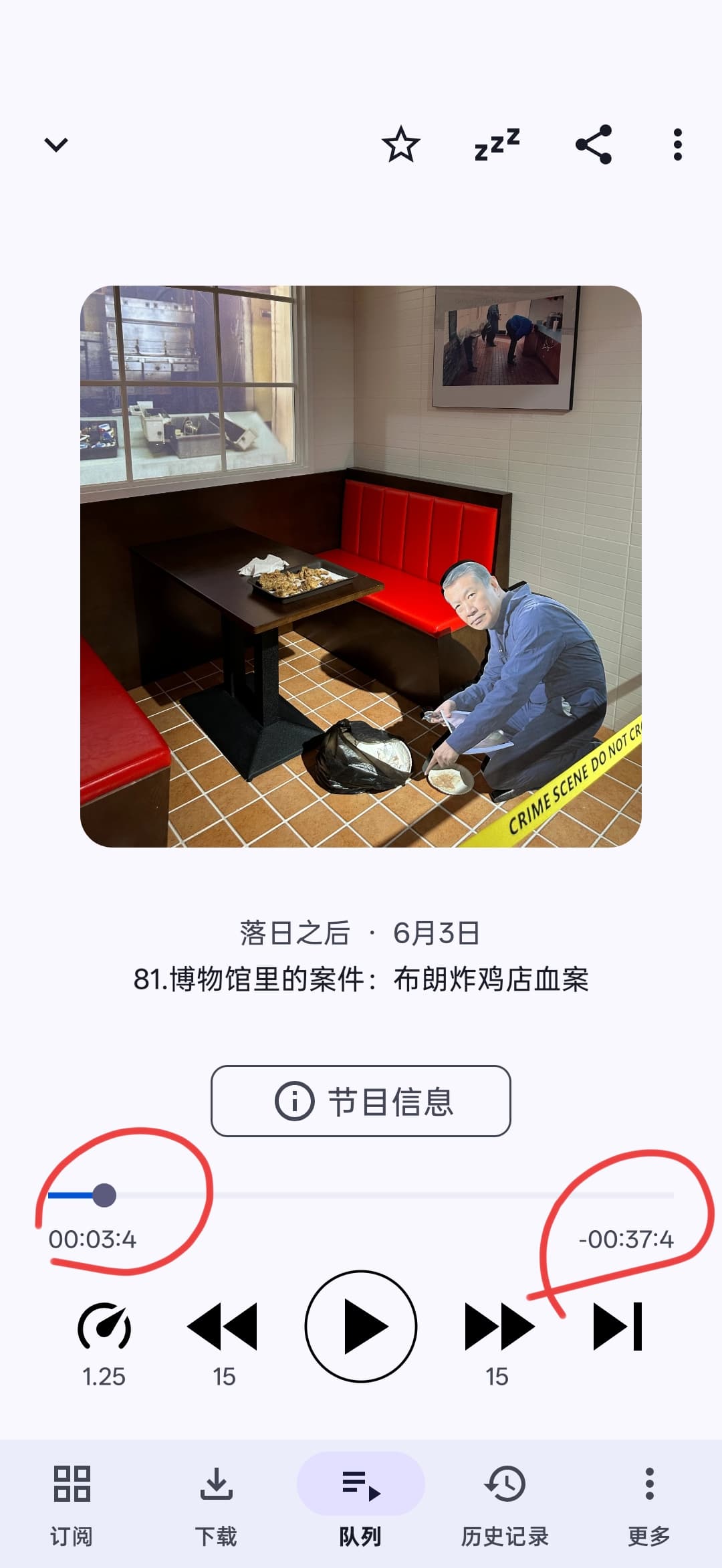 I noticed that when I listen to an episode, while the time elapsed is ok, the countdown with the time remaining misses a digit at the end: so for example is -00:25:3 (instead of being -00 (hour): 25 min : 36 seconds, then 35, 34 etc